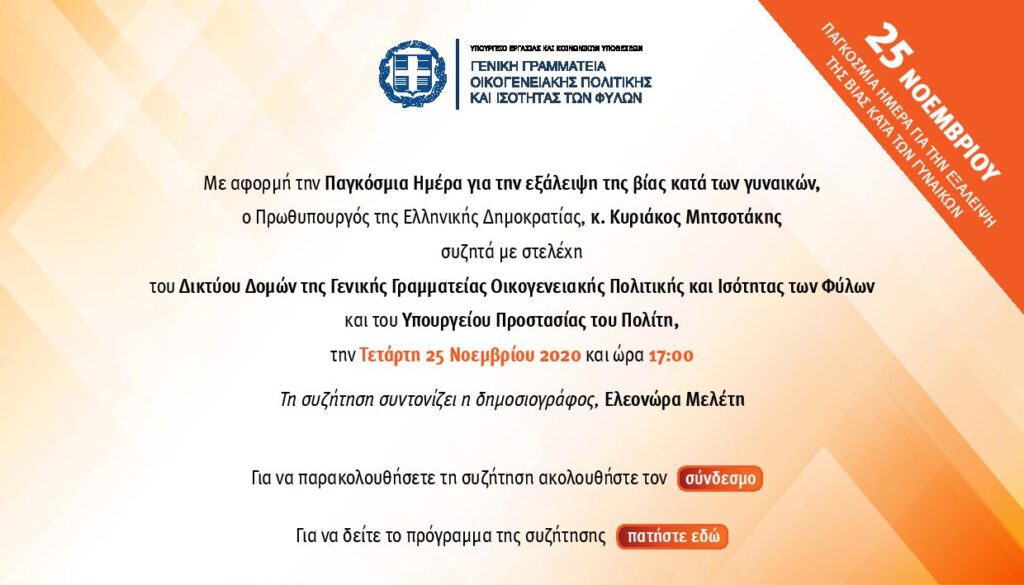 Διαδικτυακή Συζήτηση με αφορμή τη φετινή Παγκόσμια Ημέρα για την Εξάλειψη της Βίας Κατά των Γυναικών